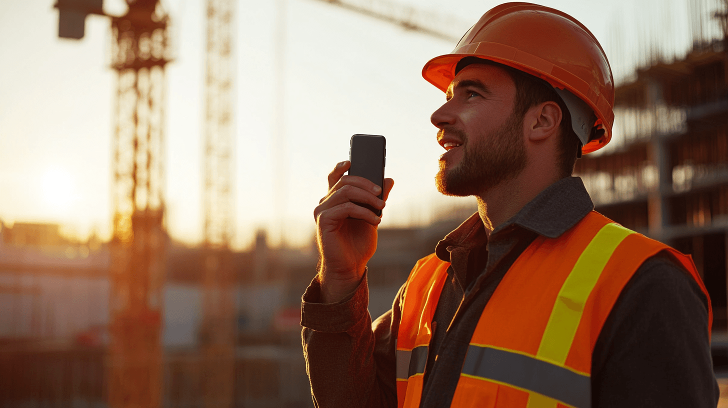 Das zeitaufwändige Zusammenstellen aller Informationen am Computer entfällt. Per Spracheingabe werden Echtzeit-Updates für Bauleiter in Sekunden erstellt und ans Büro weitergeleitet.